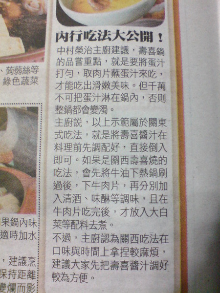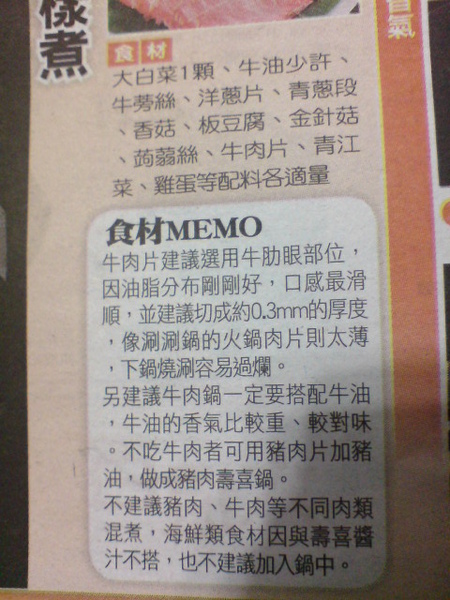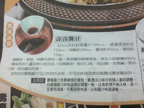 食譜小筆記 - 壽喜鍋 from 自由時報週末版